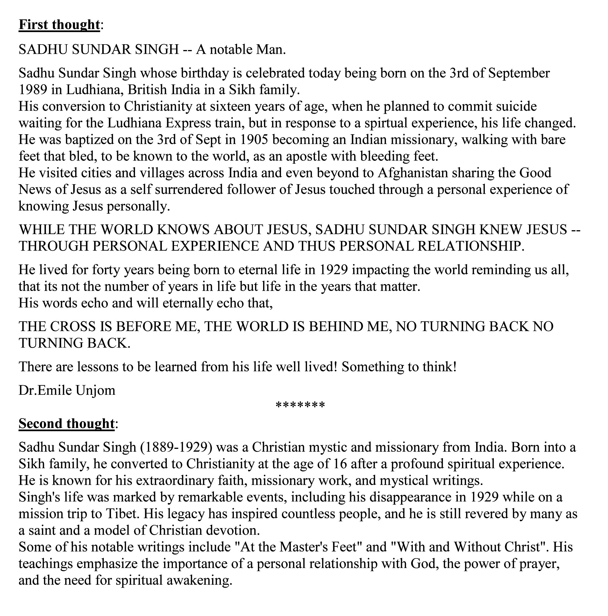 Sadhu Sundar Singh: